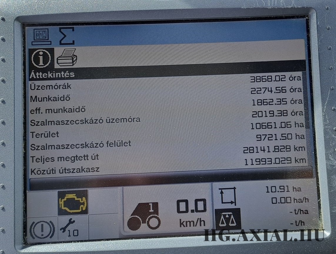 • MegjegyzésCsépelt óra: 2275 h. V8 Mercedes motor. Terület: 10661 ha.